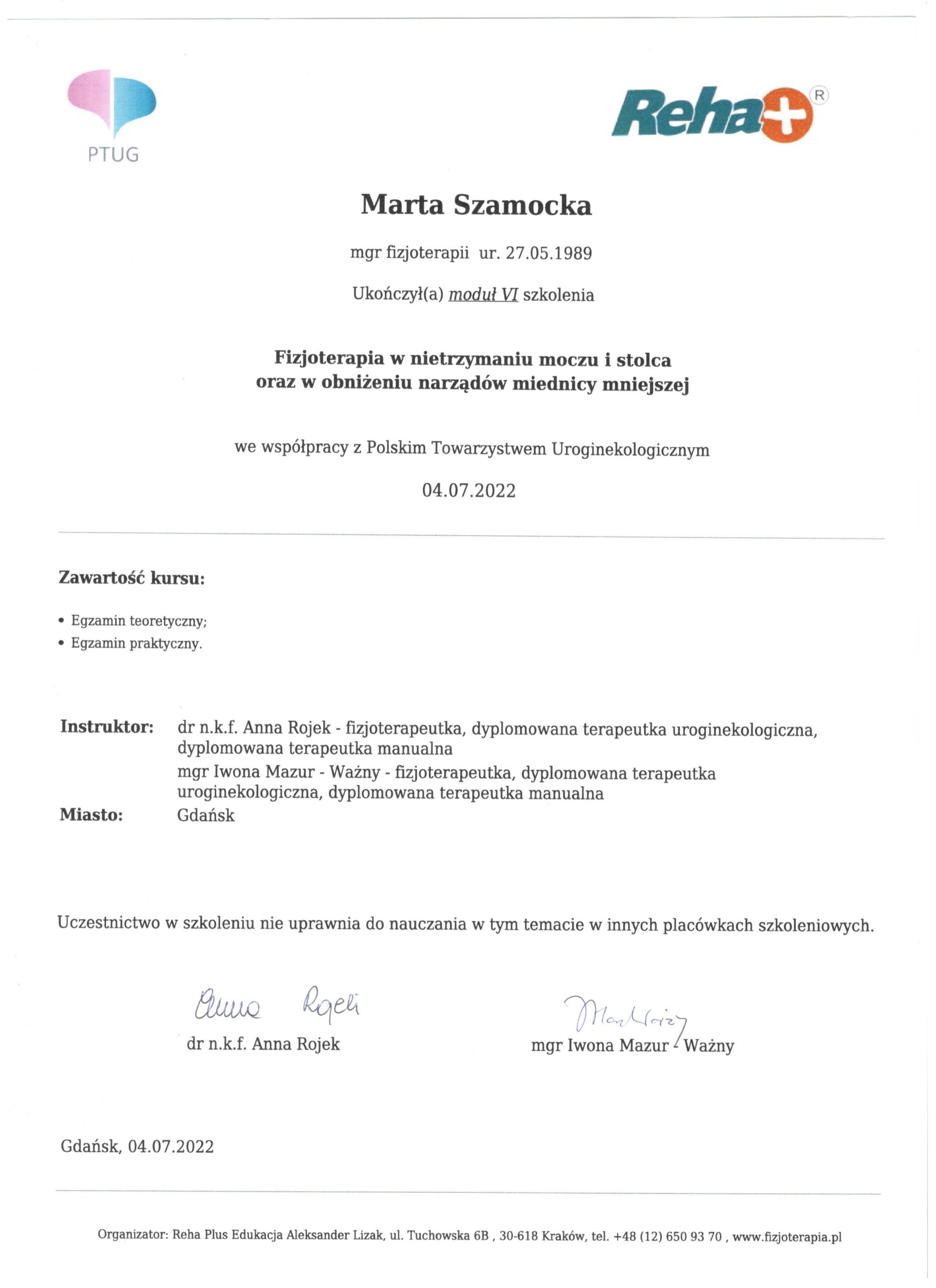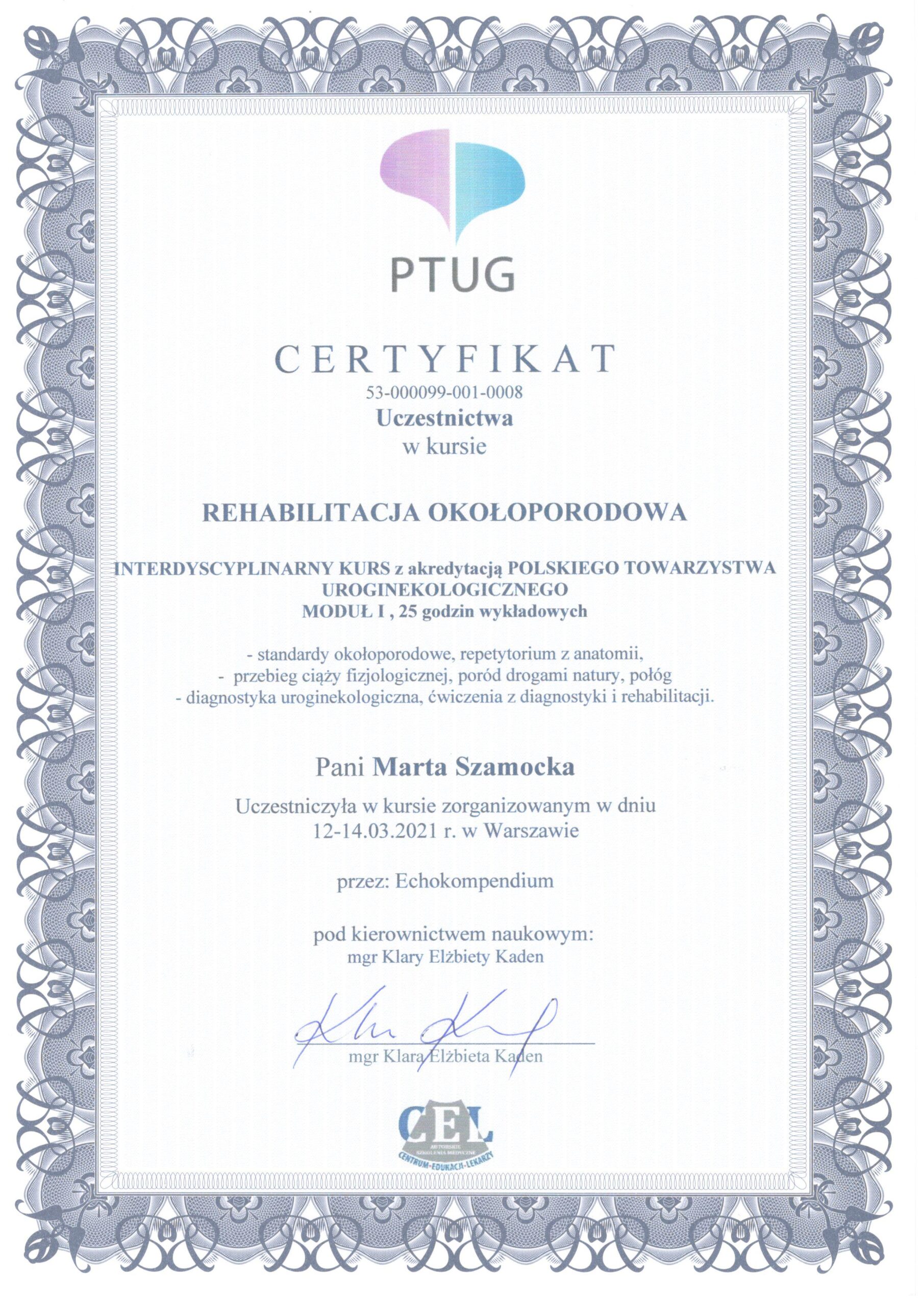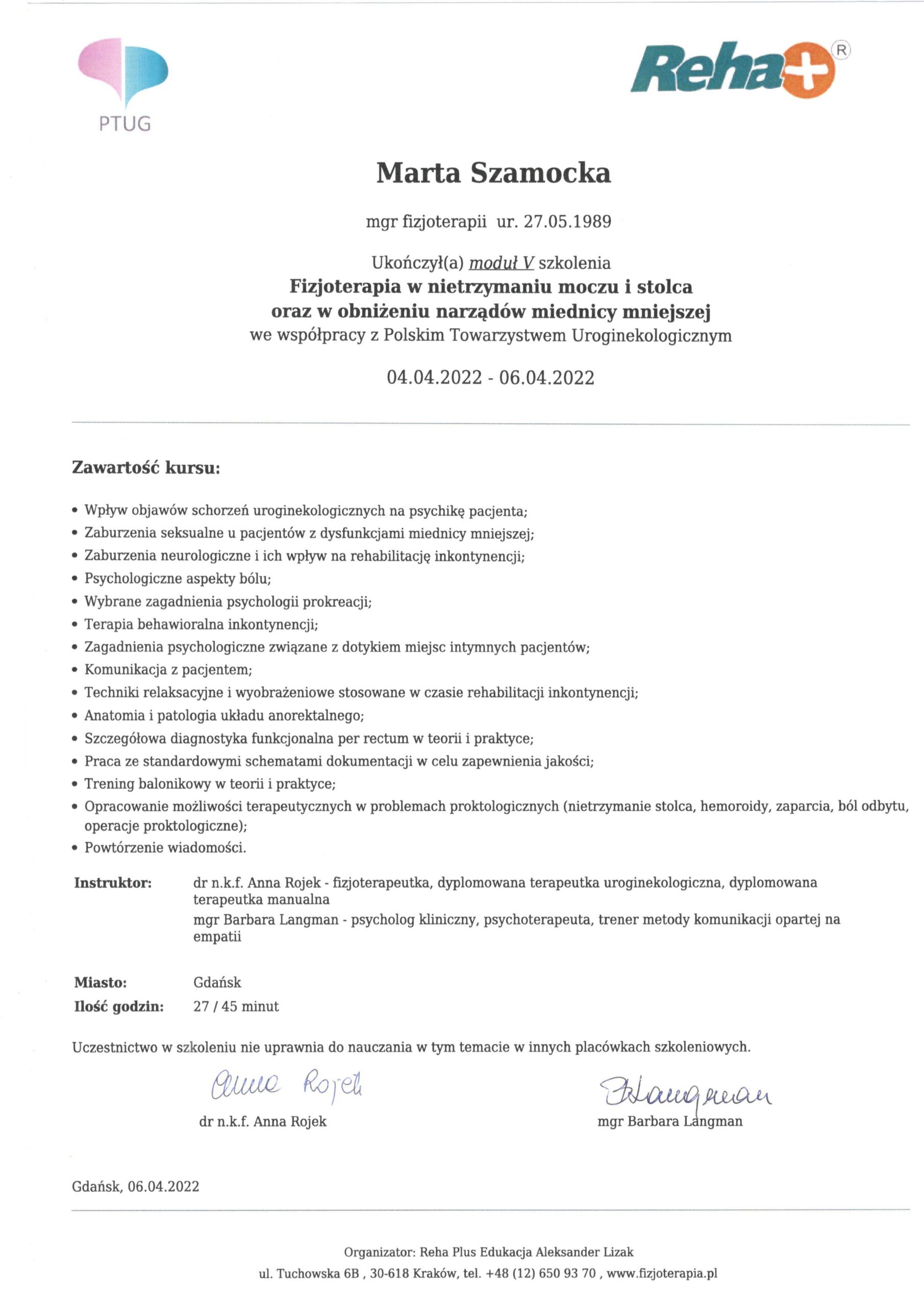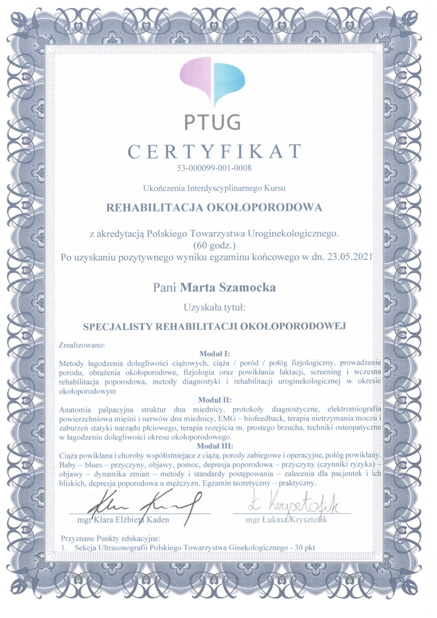 Uroginekologicznego. Specjalista rehabilitacji okołoporodowej. Moduł I, II, III