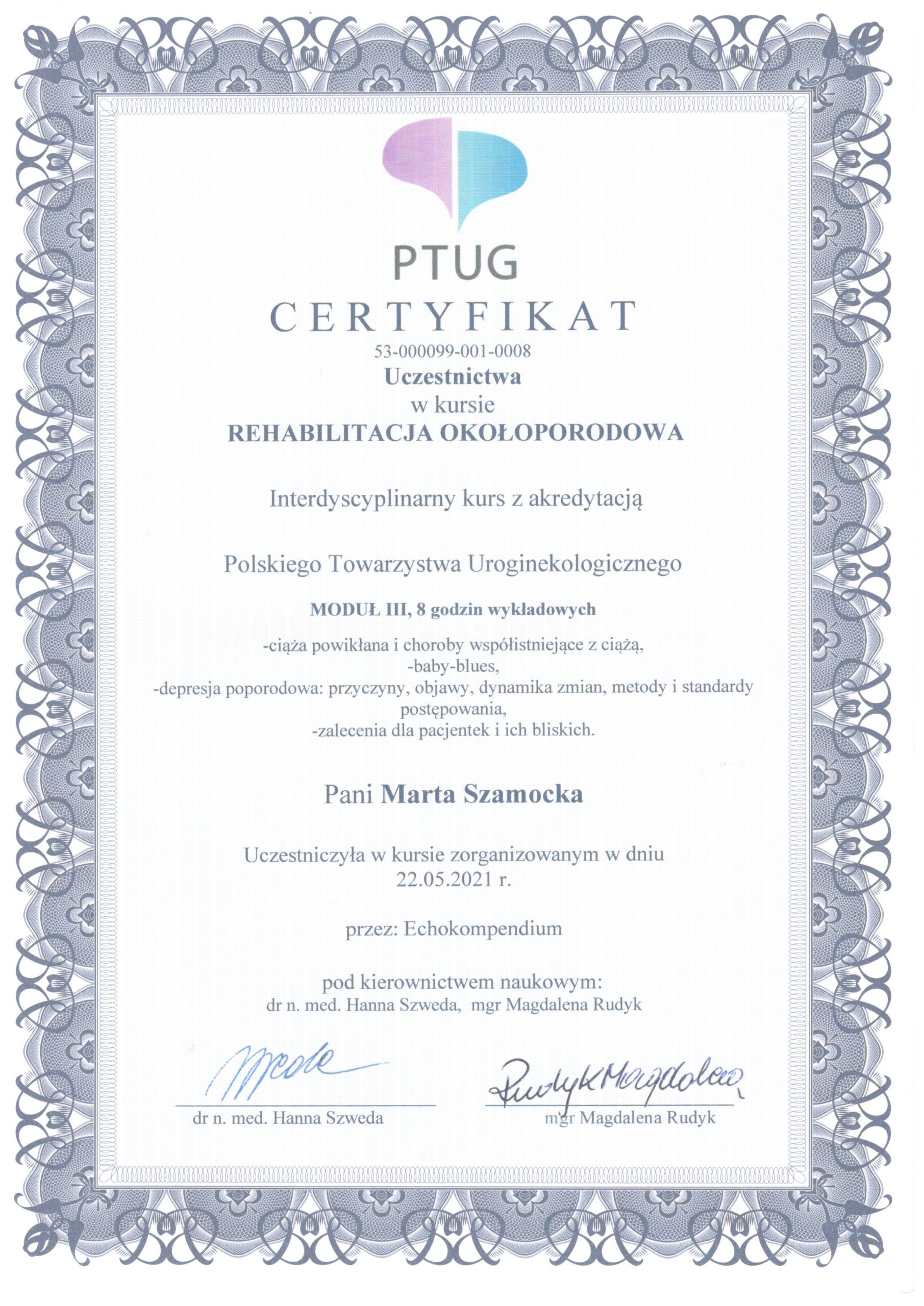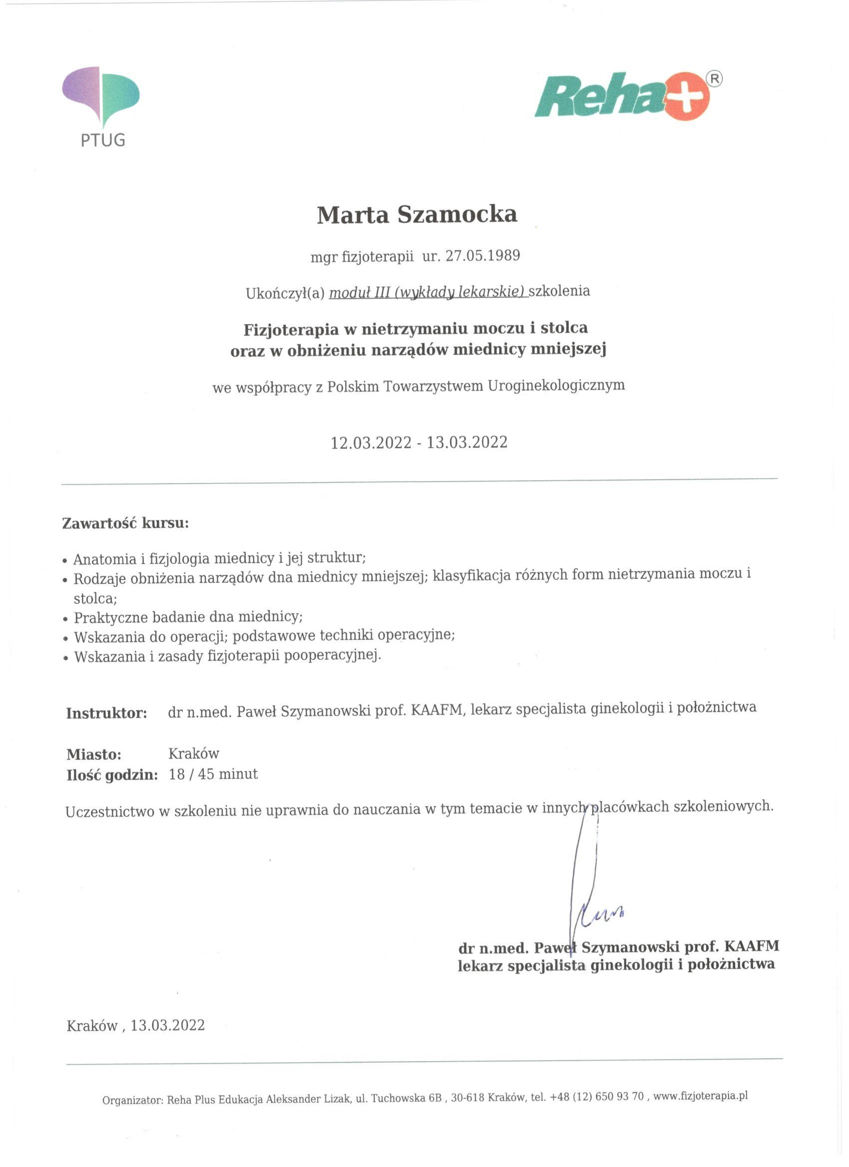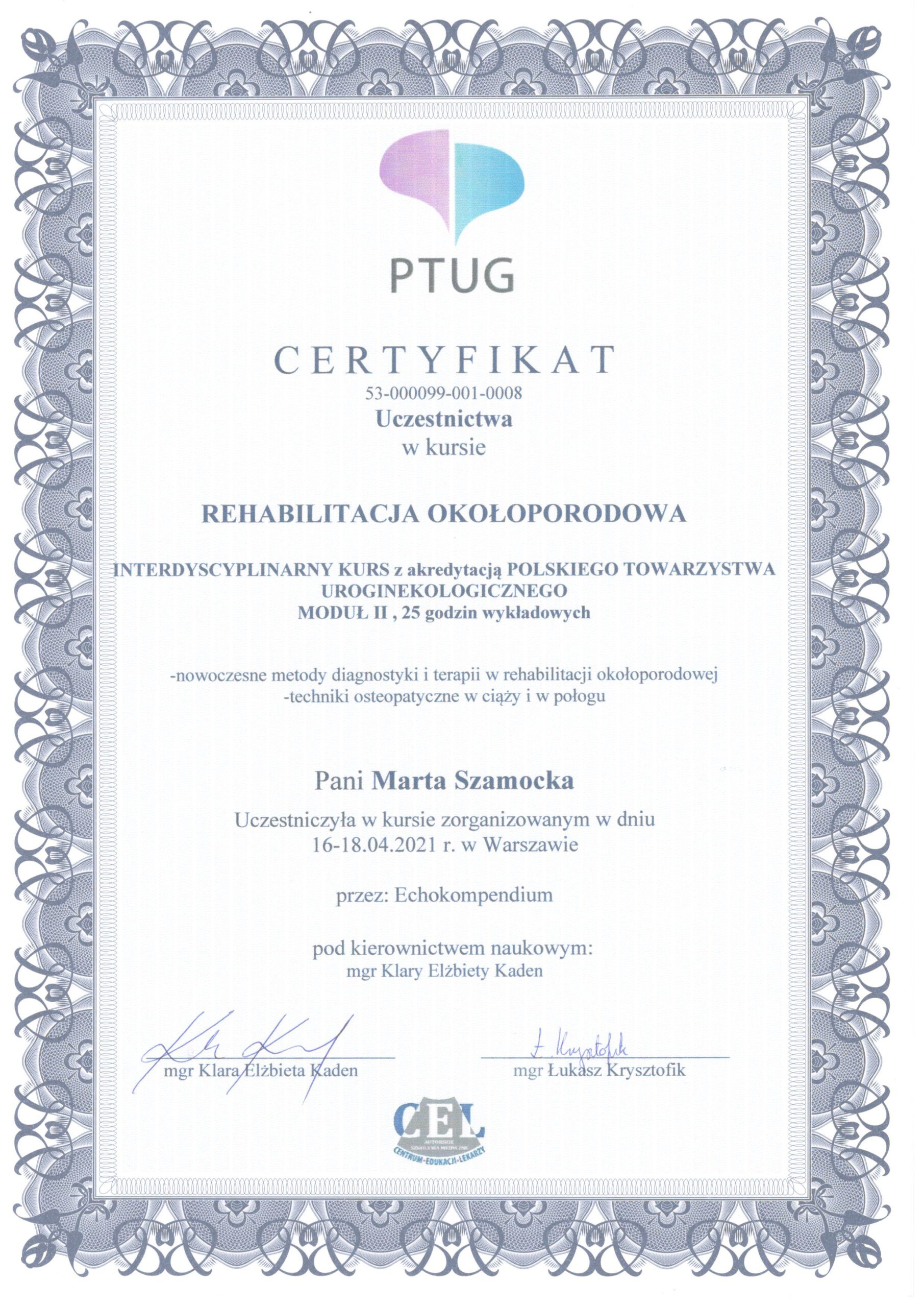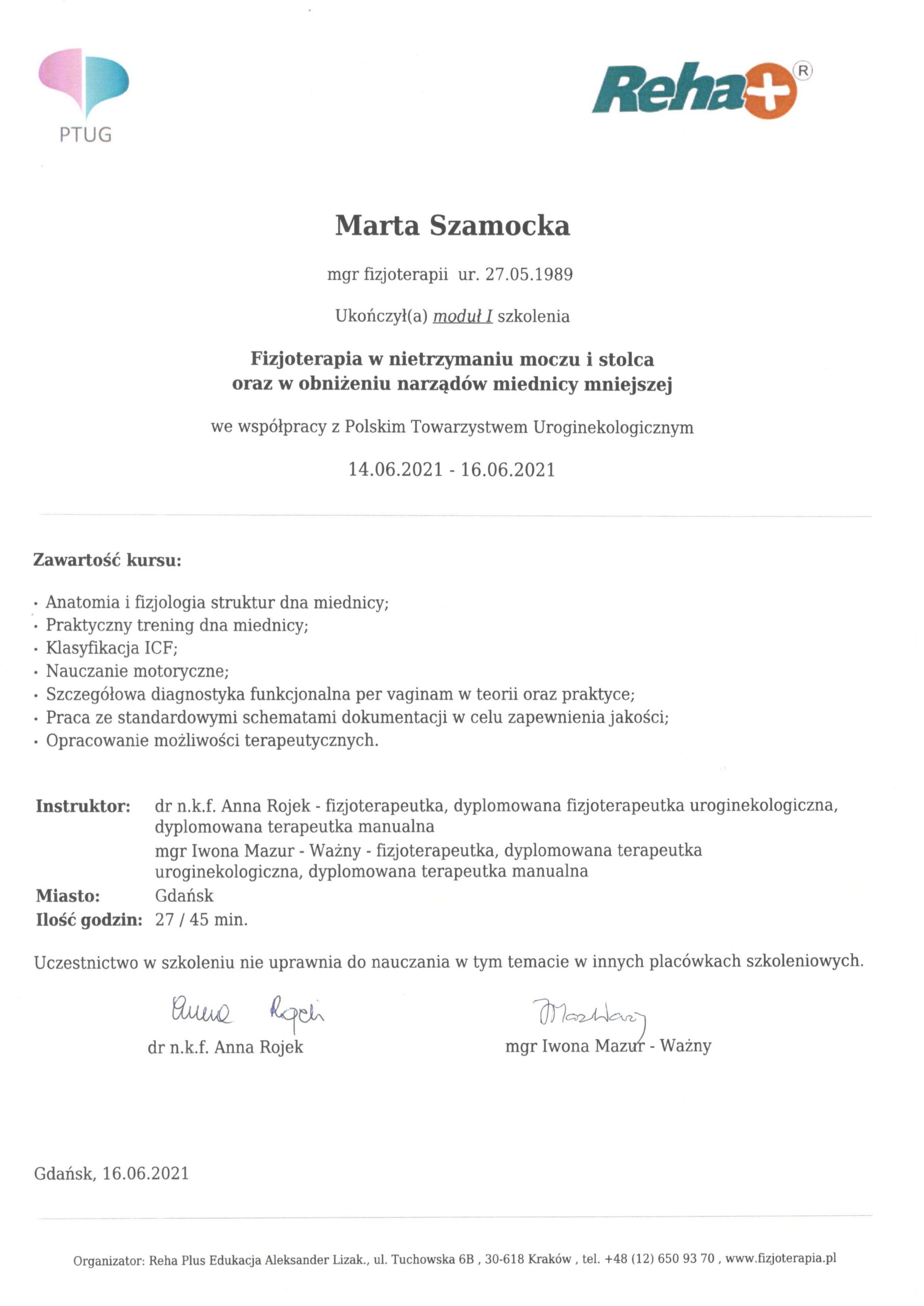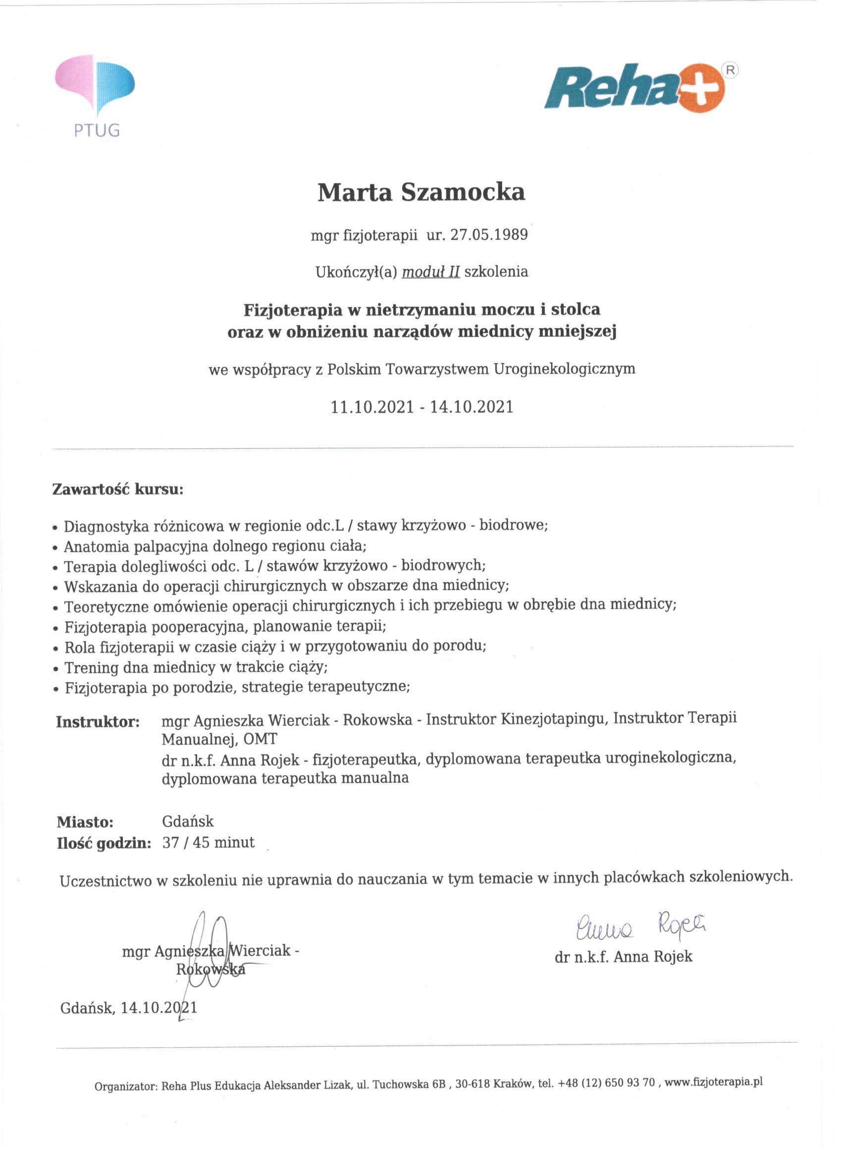 Uroginekologicznego. Specjalista rehabilitacji okołoporodowej. Moduł I, II, III