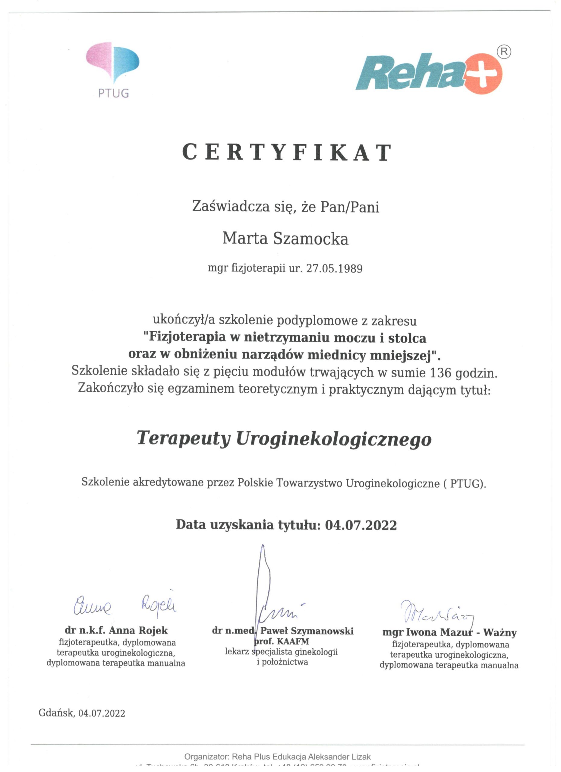 • Dyplomowana terapeutka uroginekologiczna