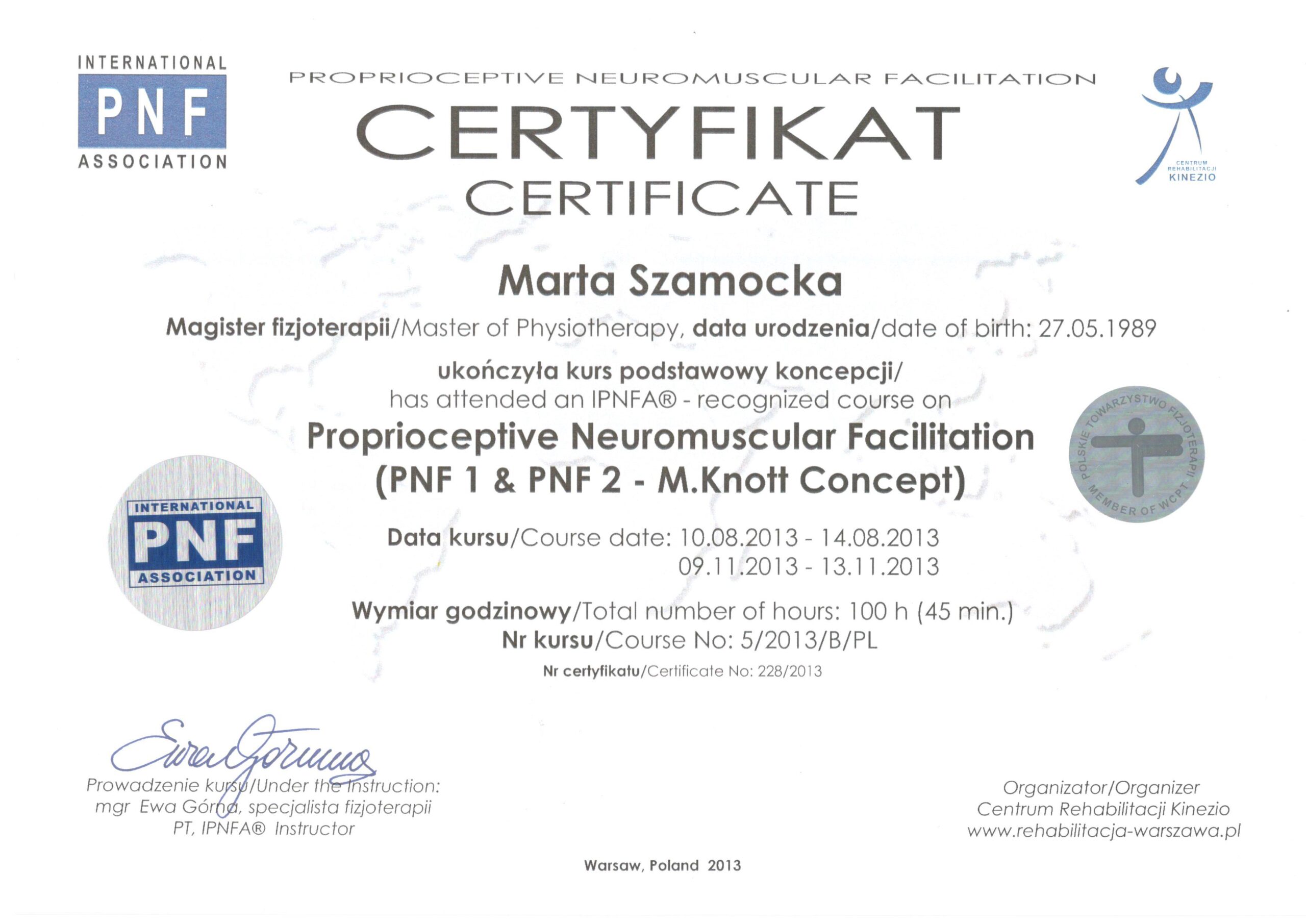 PNF Prioproceptywne torowanie nerwowo mięśniowe Kurs Podstawowy